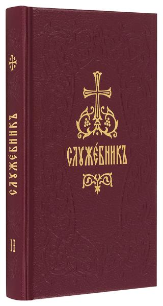 Служебник в 4 томах карманного формата в твердом переплете с блинтовым тиснением и с тиснением золотой фольгой. В 1-й том издания вошло последование Вечерни и Утрени. 2-4-й тома включают чинопоследования трех основных служб Православной Церкви – Литургии святителя Иоанна Златоустого, Литургии святителя Василий Великого и Литургии Преждеосвященных Даров.