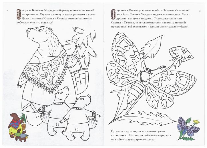 Сказка-раскраска «Про Съемку и Съешку» предназначена детям от 4 лет для совместных занятий со старшими. На страницах альбома представлены контуры рисунков, которые ребёнок превратит в яркие иллюстрации, а цветные образцы помогут подобрать карандаши, мелки или краски.