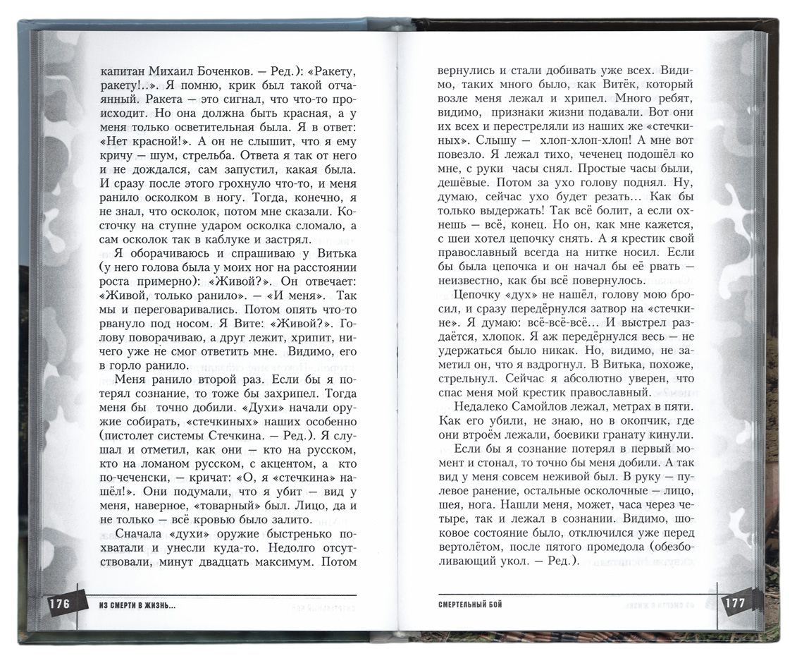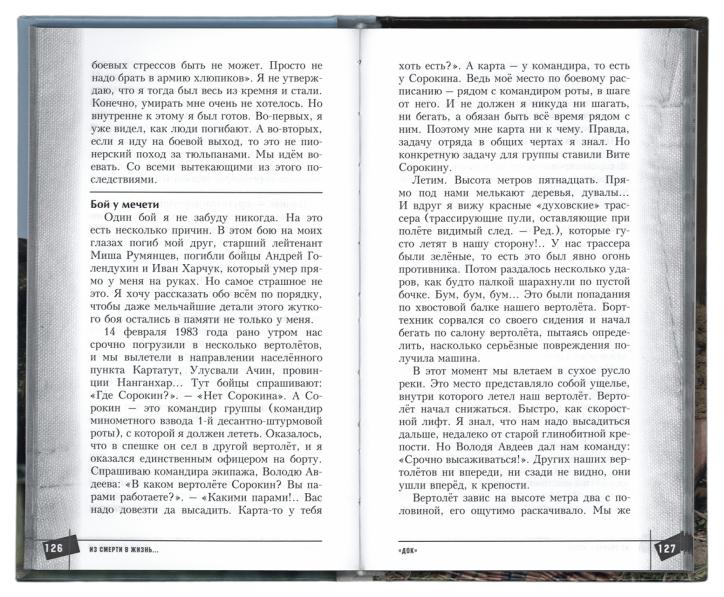 О своём личном опыте от первого лица рассказывают заслуженные офицеры Вооружённых сил Советского Союза и России: Герой России генерал-майор ВДВ Г.В. Анашкин, Герой России майор МВД И.С. Задорожный, кавалер ордена Красного Знамени, ордена Красной Звезды и ордена Мужества генерал-майор медицинской службы В.О. Сидельни-ков, кавалер двух орденов Красной Звезды полковник ВДВ В.В. Осипенко, кавалер ордена Красной Звезды и двух орденов Мужества, легендарный лётчик армейской авиации полковник В.А. Господ, кавалер ордена Мужества подполковник морской пехоты А.М. Лебедев, кавалер ордена Мужества и ордена Дружбы военный священник Димитрий Василенков и другие.