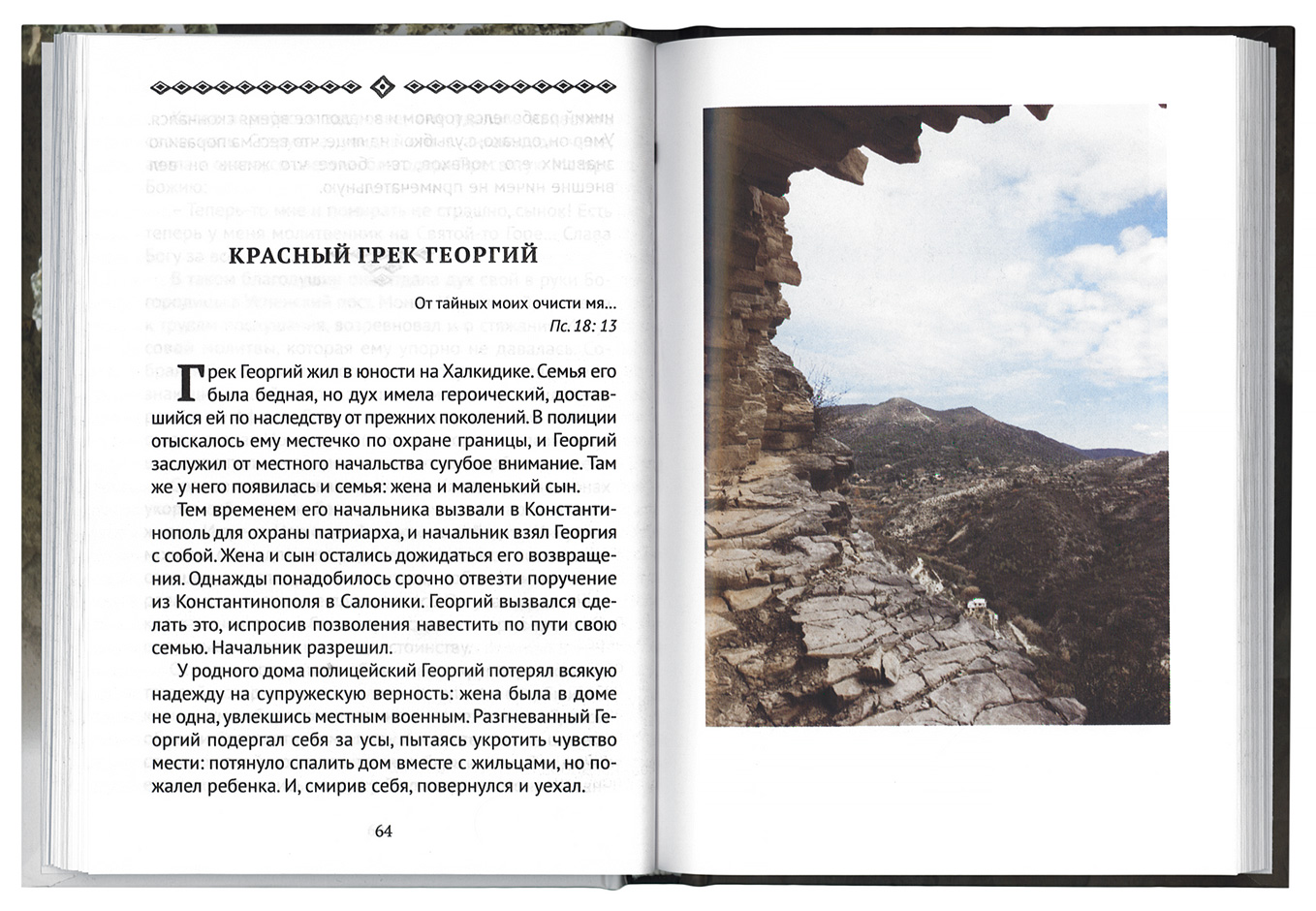 Основой рассказов являются реальные события из духовной жизни «алчущих и жаждущих правды», подвижников, населявших в конце прошлого века горы Кавказа и ущелья Афона. В них собрано духовное богатство человеческой души, волнуемой главной и всепоглощающей идеей: Спасением. Рассказывается о людях, стойко сопротивляющихся греховности человеческой природы, стремящихся уйти от обыденного прозябания в носящий в себе благодатные силы мир аскетики, молитвы и уединенной жизни.