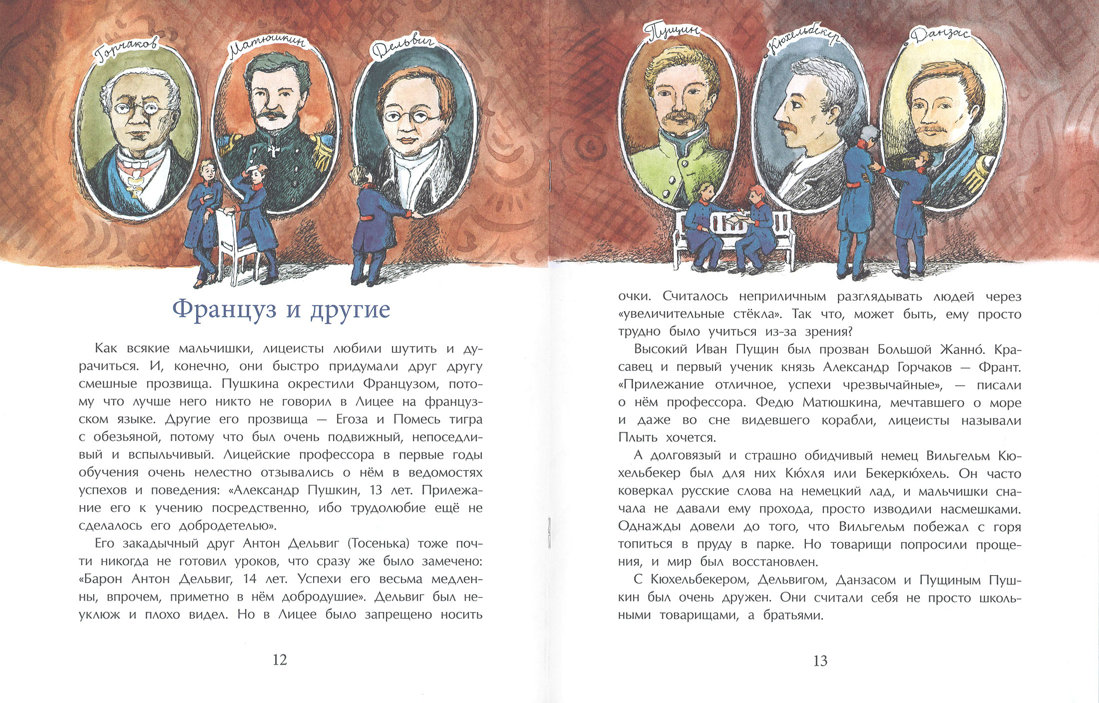 Александру Сергеевичу Пушкину довелось учиться в удивительной школе — Императорском Царскосельском лицее. Там он впервые почувствовал своё призвание и обрел настоящих друзей. Эта книга о том, как была устроена жизнь Лицея, многие из выпускников которого оставили след в русской истории, и, конечно, о самом знаменитом, самом первом его классе, в котором учился Пушкин.