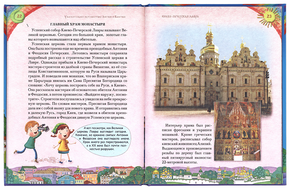 В красочно иллюстрированной книге рассказывается об увлекательном путешествии Анечки и Ванечки в Киево-Печерскую-Лавру. Друзья-одноклассники оказываются в одном из первых монастырей на Руси. Ребята познакомятся с историей Киево-Печерской Лавры с момента ее основания до наших дней.
