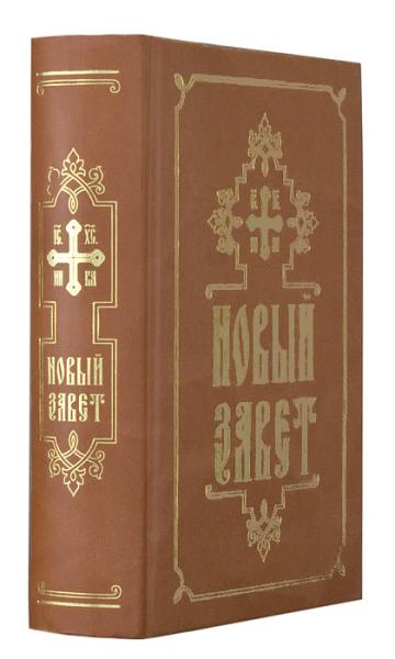 Новый Завет на русском языке. Издание малого формата содержит церковные зачала. Книга в твердом переплетес с блинтовым тиснением и с тиснением золотой фольгой напечатана в два цвета увеличенным шрифтом на офсетной бумаге.