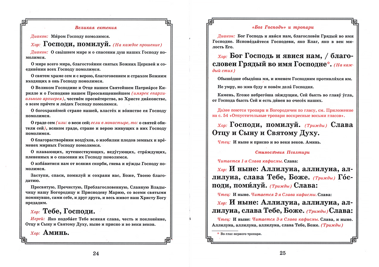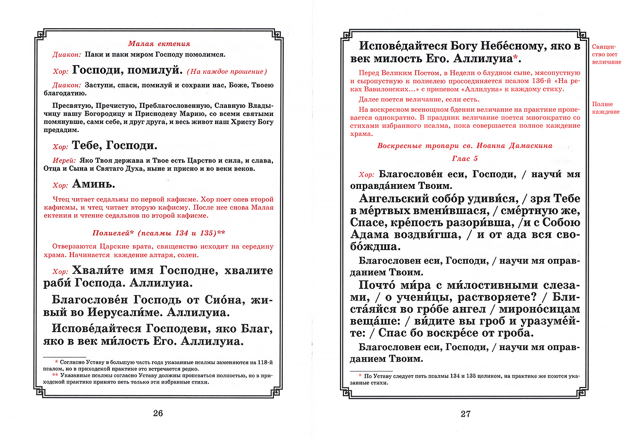 Комментарии в сносках отображают годовые особенности богослужения.
